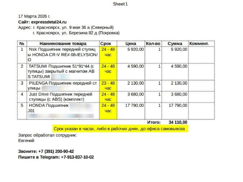 требуется 4 часов на подготовку заказа к выдаче.