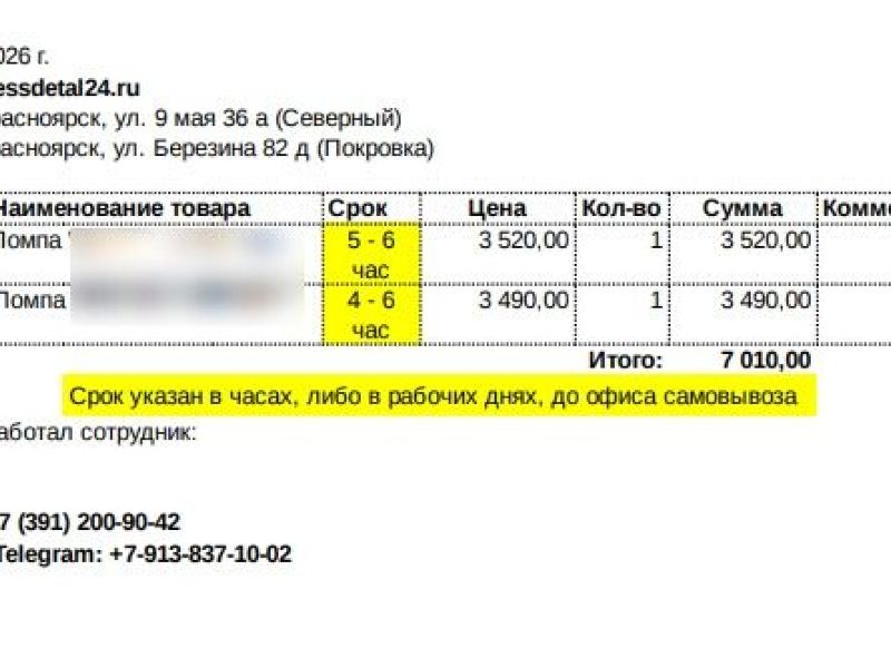 4 часа на подготовку заказа к выдаче.