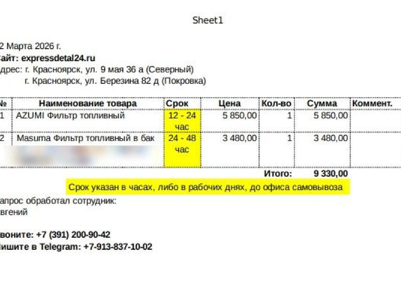 требуется 4 часов на подготовку заказа к выдаче.